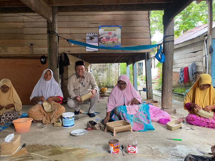Bersama puluhan ibu-ibu di desa setempat, Mawarni usai menjalankan tugas mulia sebagai ibu rumah tangga (IRT), tak lantas berleha-leha tanpa manfaat. Mereka turut membantu ekonomi keluarga lewat karya anyaman bili.