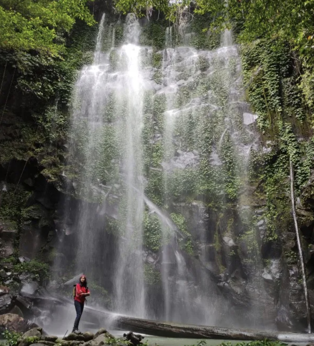 Sesampai di lokasi air terjun penat selama perjalanan terbayarkan oleh indah dan sejuknya panorama air terjun dan rimbunnya pepohonan hutan tropis yang menutupi area.