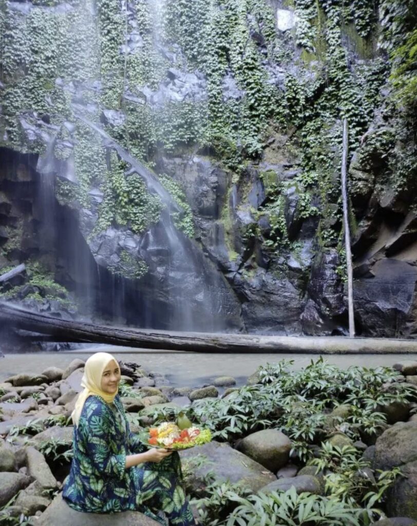 Dibalik air terjun ditumbuhi banyak orchid/anggrek batu yang ketika musim mekarnya menyuguhkan suatu pemandangan yang sangat indah dan eksotis.